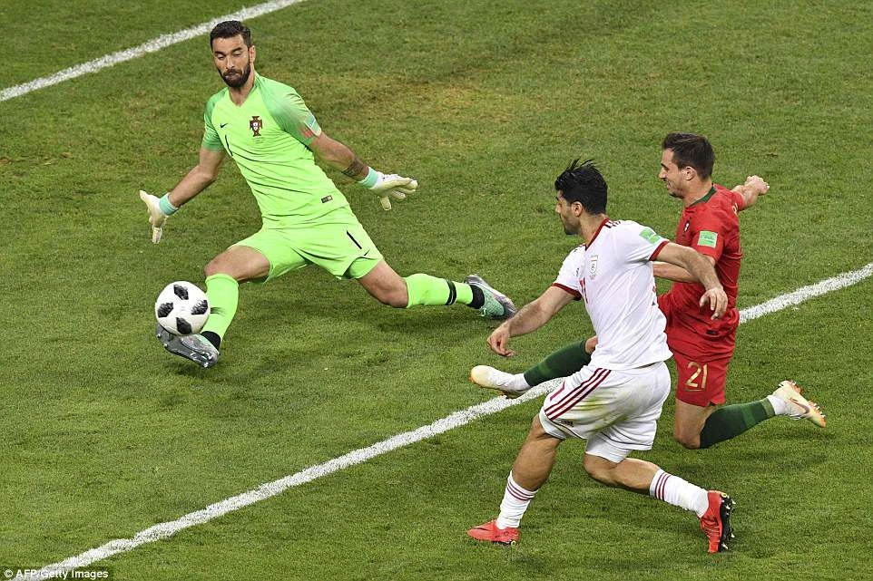 Ezatolahi đã ở rất gần bàn thắng khi anh đánh đầu cận thành từ quả đá phạt nhưng bóng lại đi đúng vào vị trí thủ thành Rui Patricio chọn sẵn.