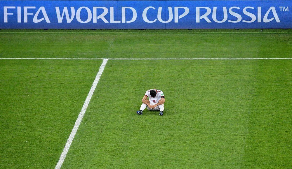 Cầu thủ Iran ngồi bệt xuống sân tiếc nuối.