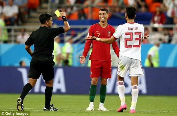 Ronaldo thoát thẻ đỏ sau pha thúc chỏ vào mặt Morteza Pouraliganji của Iran.