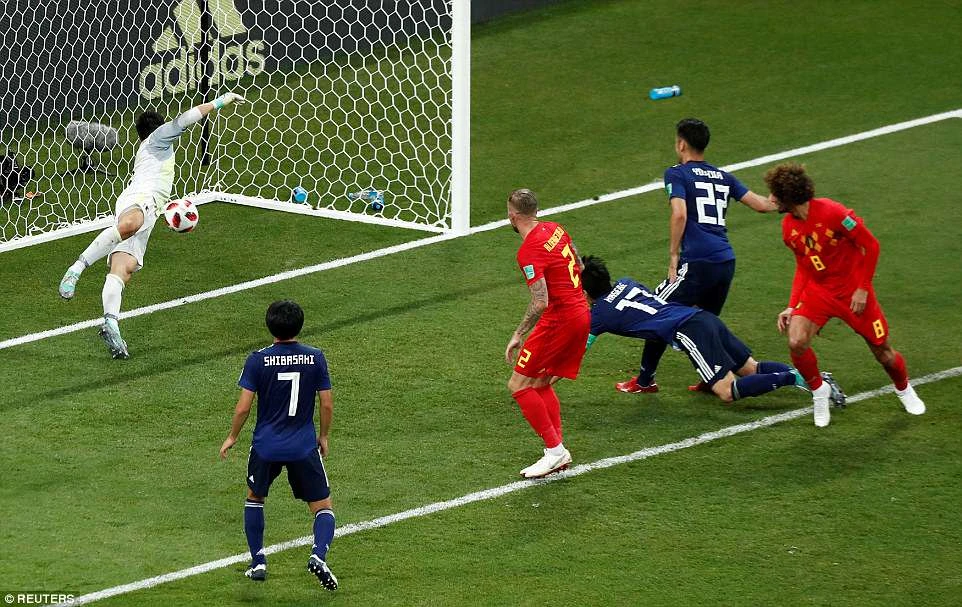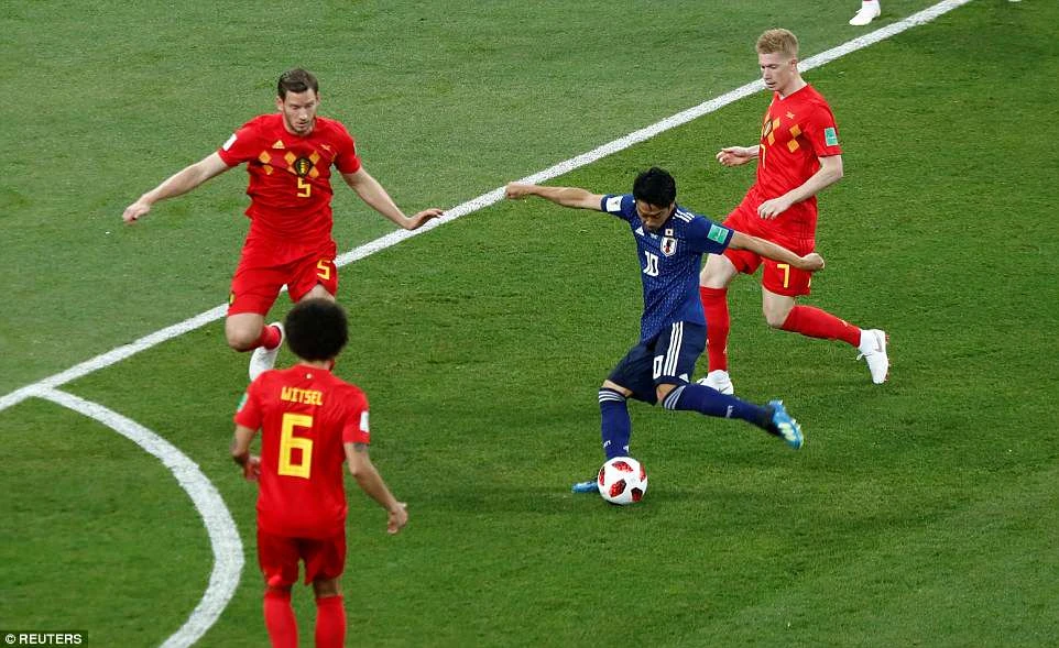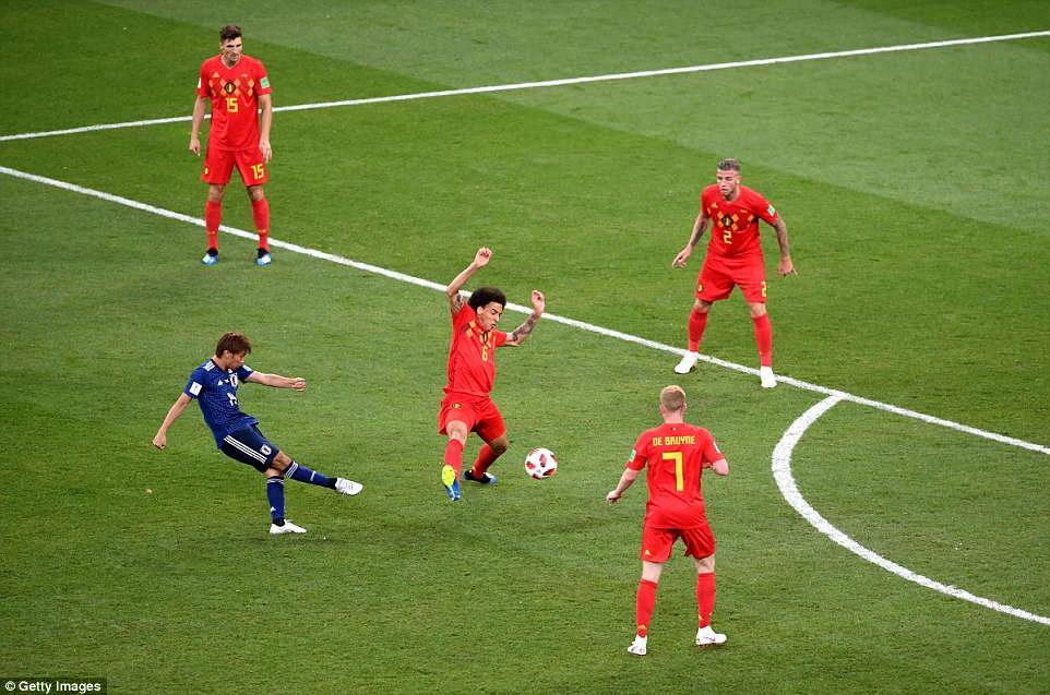 Ngay sau khi Hazard sút bóng trúng cột dọc, Nhật Bản lại một lần nữa trừng phạt Bỉ bằng bàn thắng thứ hai ở phút 52…