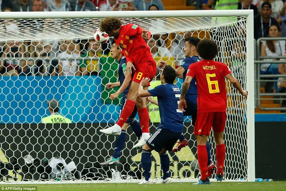 Chỉ 5 phút sau, từ đường tạt bóng của Hazard, tiền vệ cao kều Fellaini tì đè đánh đầu san bằng tỉ số 2-2 cho Bỉ.