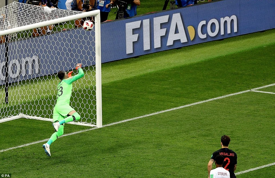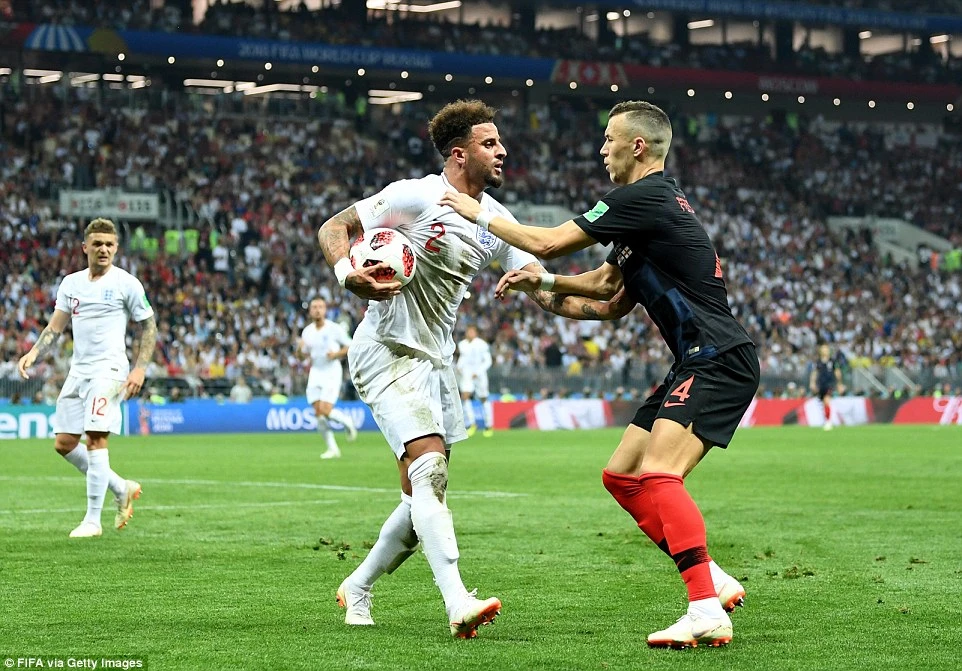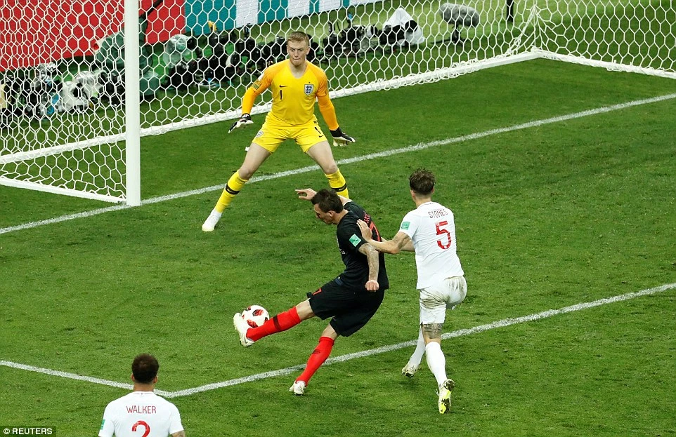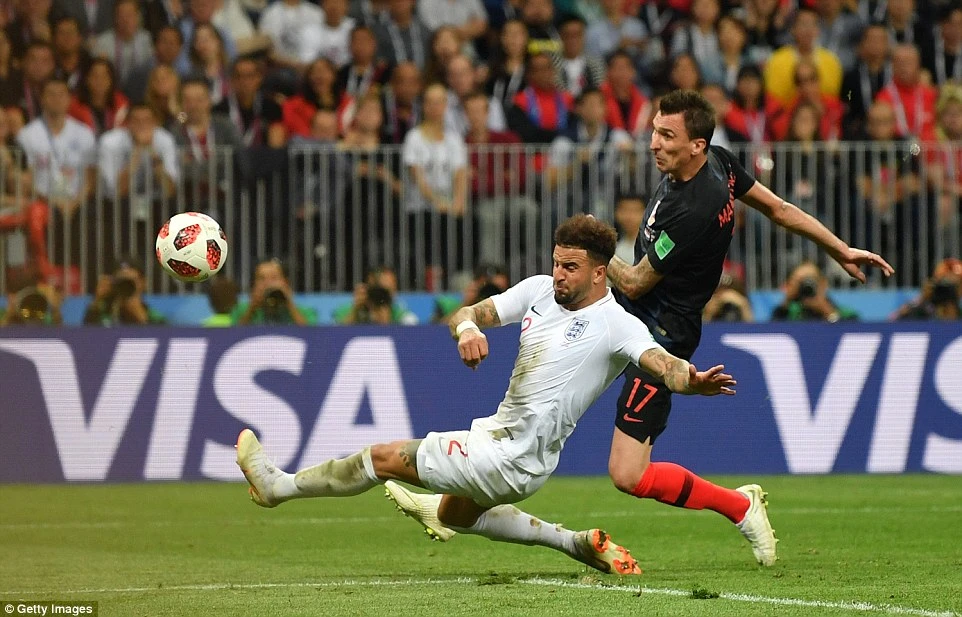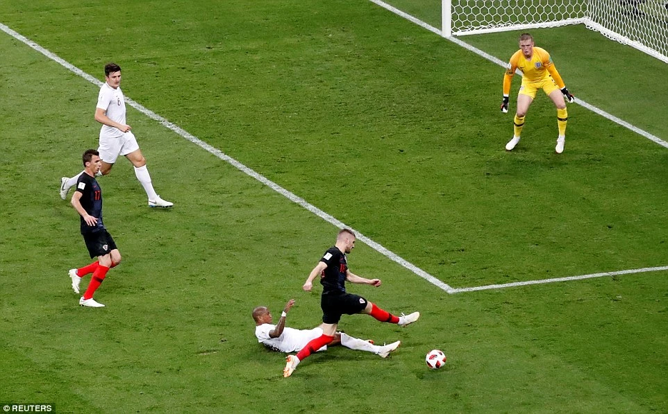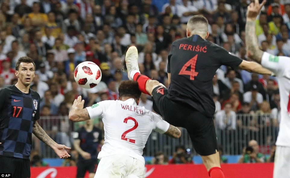 Ivan Perisic lao tới tung chân dứt điểm ngay trước khi Kyle Walker kịp đánh đầu phá bóng ghi bàn san bằng tỉ số 1-1 cho Croatia ở phút 68.