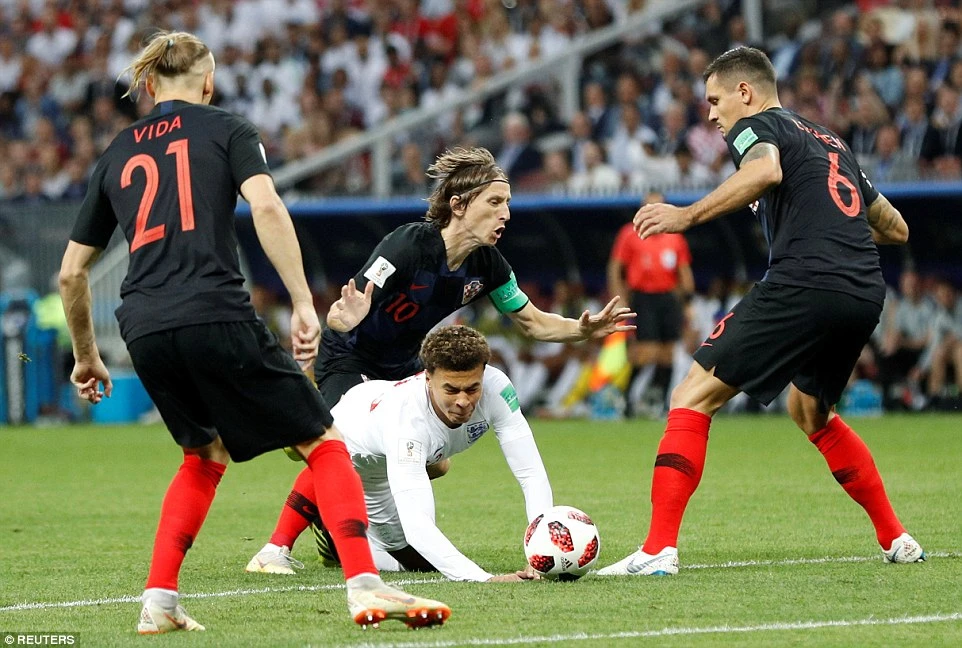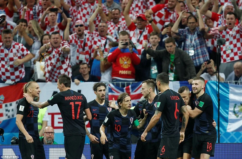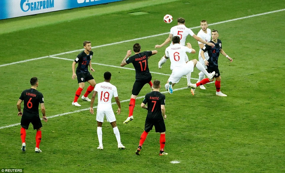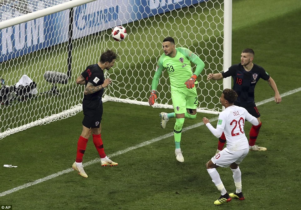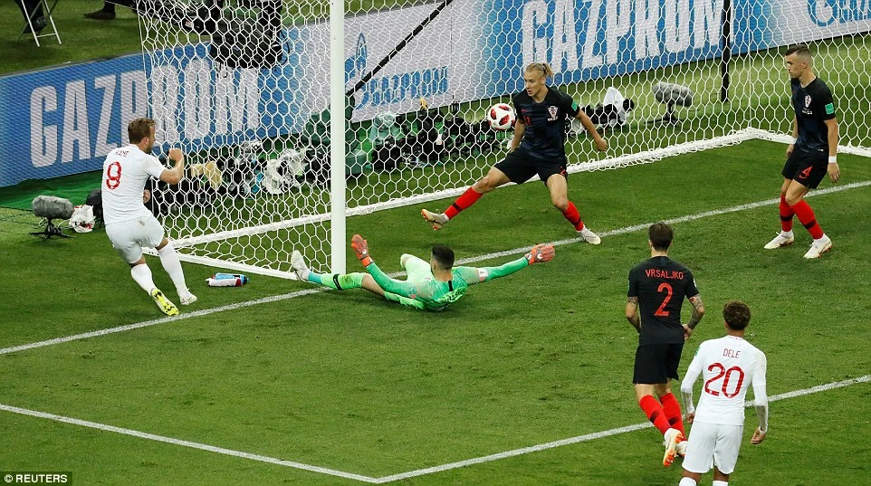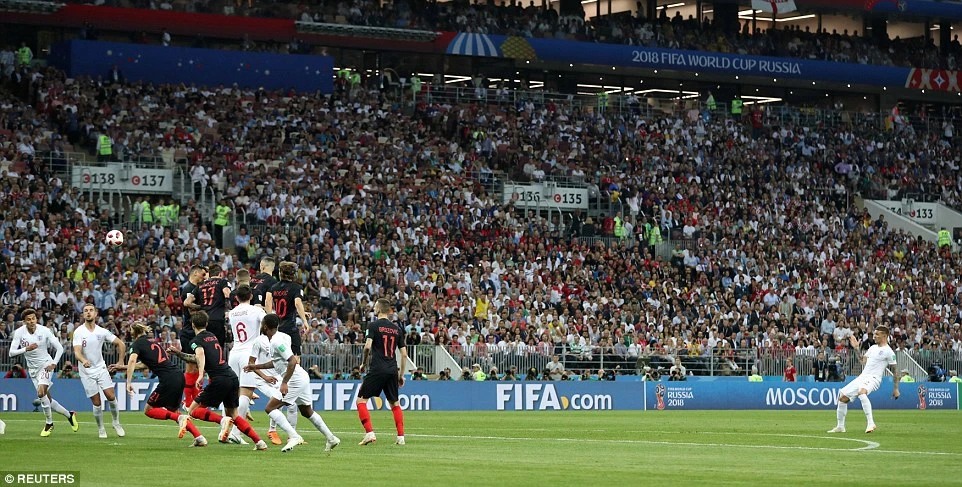 Ivan Perisic lao tới tung chân dứt điểm ngay trước khi Kyle Walker kịp đánh đầu phá bóng ghi bàn san bằng tỉ số 1-1 cho Croatia ở phút 68.