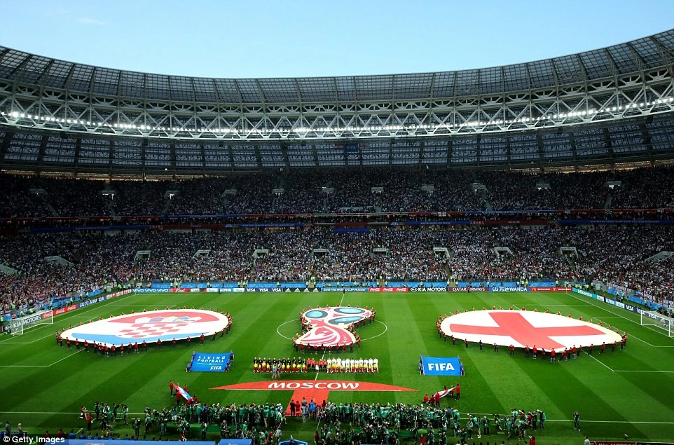 Quang cảnh hoành tráng trược trận bán kết 2 World Cup 2018 giữa Anh và Croatia trên sân Luzhniki.