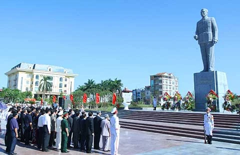Lãnh đạo Đảng, Nhà nước, Quốc hội, Chính phủ, MTTQ VN và tỉnh Hưng Yên đến dâng hoa tại Tượng đài Tổng Bí thư Nguyễn Văn Linh. Ảnh: TTXVN