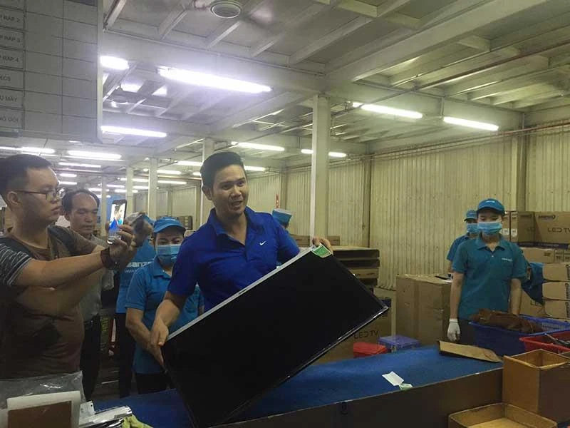 Những ngày qua, lùm xùm vụ Asanzo nhập linh kiện rồi xé nhãn Trung Quốc, lột tem và dán tem nhãn “Made in Vietnam” vào để bán khiến dư luận bức xúc. Trong ảnh: Ông Phạm Văn Tam, Tổng giám đốc Asanzo, nói về quy trình lắp ráp tivi. Ảnh: TÚ UYÊN