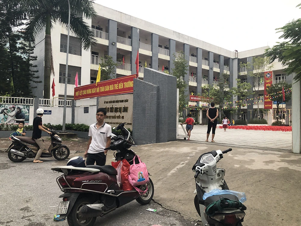 Phụ huynh học sinh tới đón con tại Trường Tiểu học Hạ Đình.