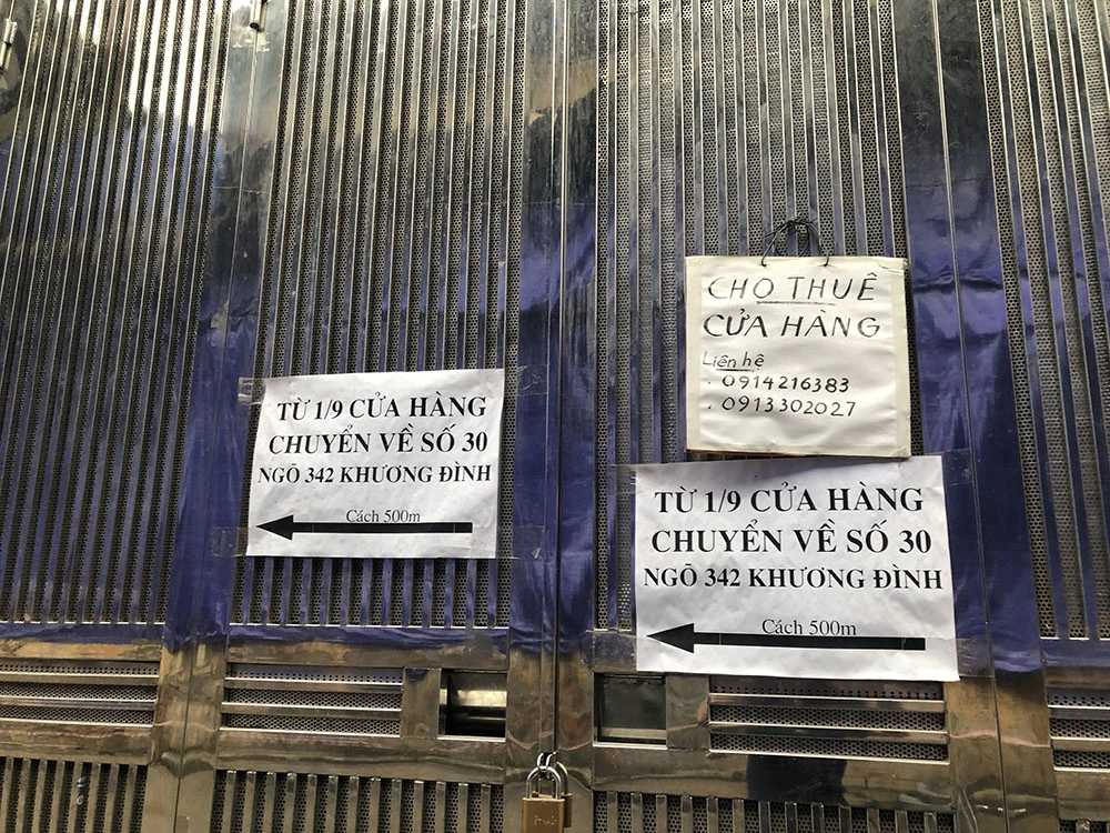 Một số cửa hàng vẫn treo biển tạm thời đóng cửa và chỉ dẫn cách liên lạc, phần lớn hộ dân khi ra vào xong đóng cửa ngay. Tuy nhiên, các hàng rau, hàng ăn, hàng thịt ngay đầu ngõ 342 Hạ Đình đã mở cửa buôn bán trở lại nhưng vắng khách.