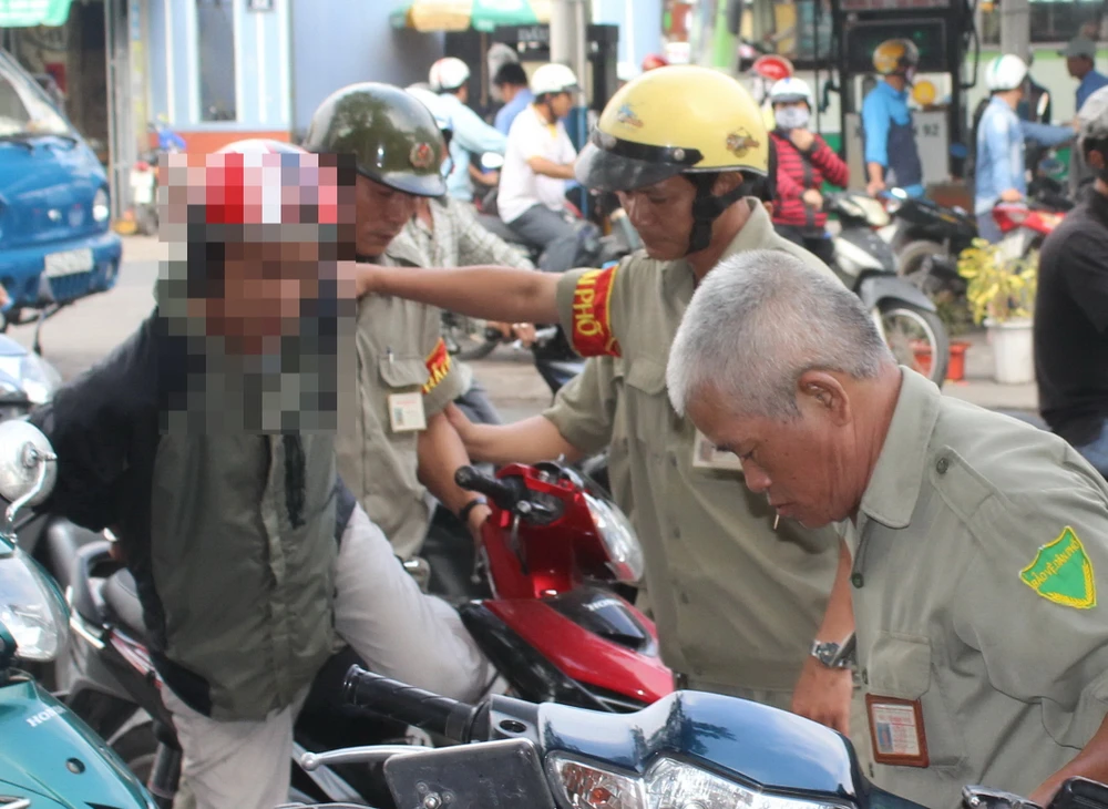 Một người lang thang bị tập trung về trụ sở công an phường 12, quận 8. Ảnh: H.LAN