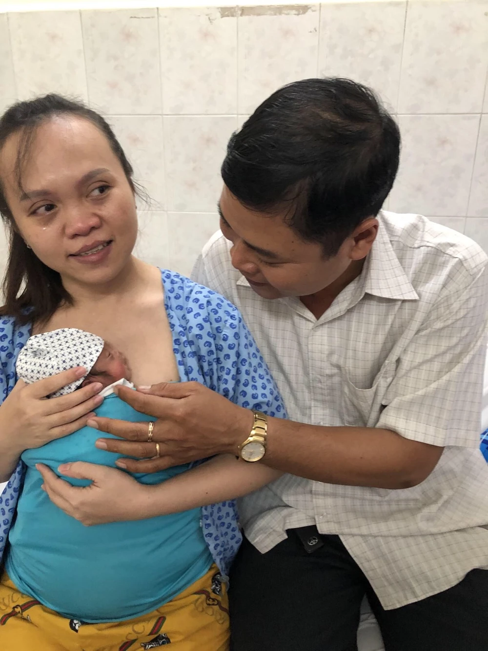 Cách đây bốn năm, chị Hồng Châu đã một lần mang thai và sinh non lúc 23-24 tuần nên không thể giữ lại con. Sau thời gian chờ đời, tích cóp đồng lương công nhân, hai vợ chồng quyết định mang thai bằng phương pháp thụ tinh trong ống nghiệm.