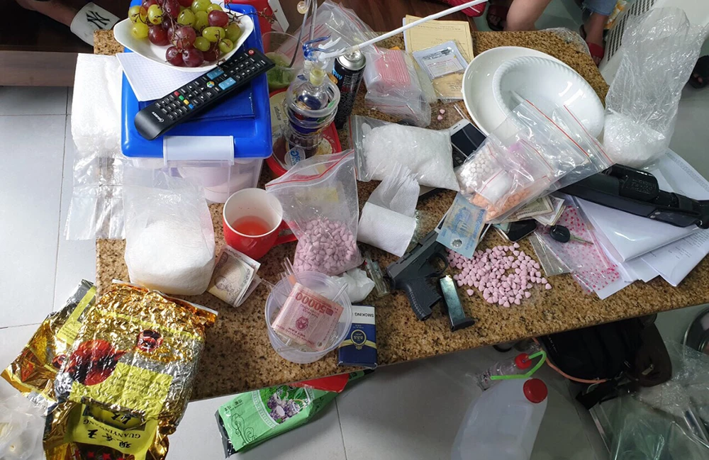 Khám xét khẩn cấp nơi ở của Ngọc tại chung cư ở quận 4, công an thu giữ thêm một khẩu súng, năm viên đạn cùng một lượng lớn ma túy.