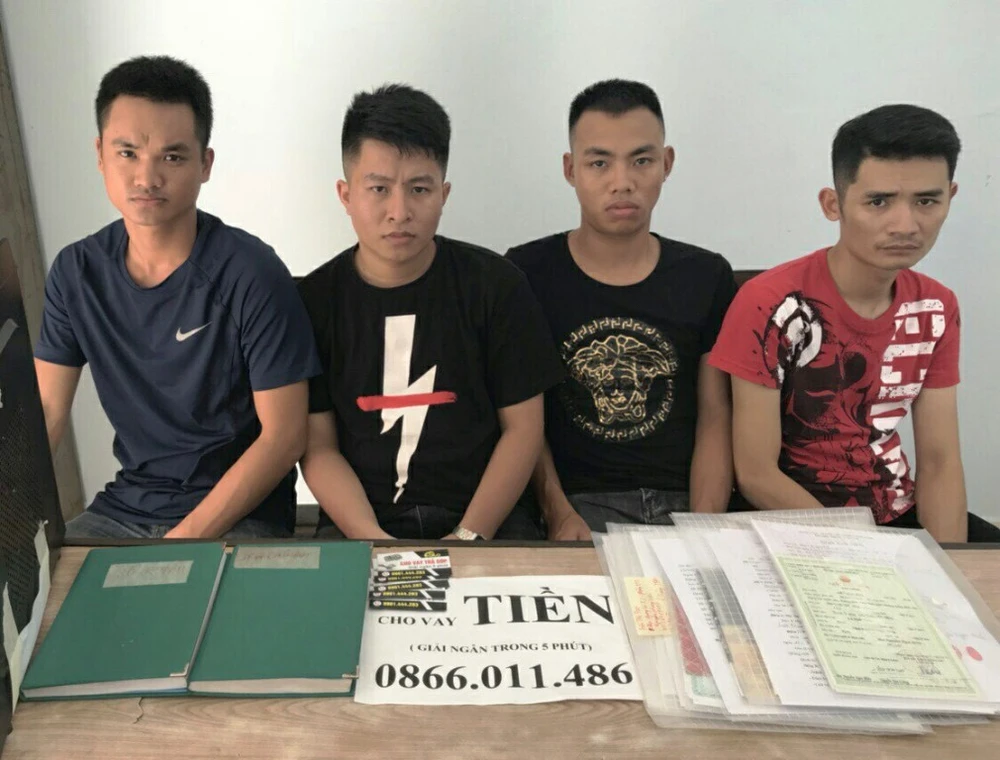 Nhóm cho vay lãi suất cao tại công an. Ảnh: CA