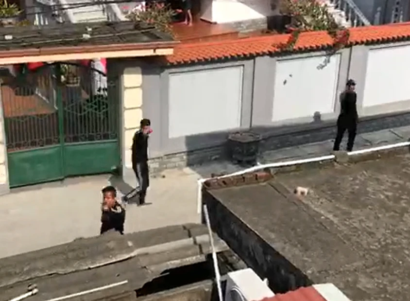 Tới trưa cùng ngày, khi anh H vừa về nhà thì nhóm thanh niên xăm trổ lại bất ngờ quay trở lại. Thấy nhóm côn đồ ập tới, anh H cùng một người bạn đã vội vã chạy lên nóc nhà lẩn trốn.