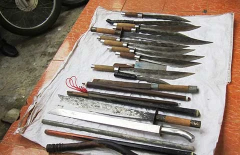 Thấy lực lượng hình sự xuất hiện, cả nhóm người trên bỏ chạy tán loạn và bỏ lại hiện trường nhiều loại hung khí (mã tấu, dao tự chế, chĩa, búa..) cùng tám xe máy.