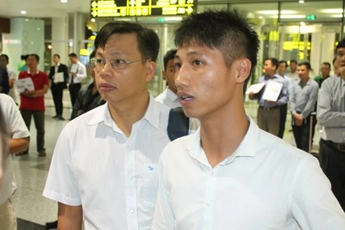 14 giờ, người thân một số lao động đã có mặt tại nhà ga T2 sân bay Nội Bài ngóng chờ người thân. Ngoài hành lang, anh Phùng Quốc Việt (con trai ông Nguyễn Ngọc Trí, quê Thạch Thất, Hà Nội) tay bồng con, mắt chăm chú dõi theo dòng người bước ra từ sảnh nhà ga. "Sao chưa thấy bố đâu cả...!" - anh Việt lẩm bẩm và chạy lòng vòng hết cửa này đến cửa khác.
