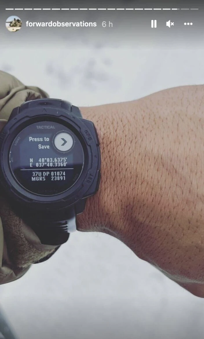 Hình ảnh chụp từ màn hình đồng hồ của một thành viên nhóm hiển thị tọa độ của vùng Donbass. Ảnh: RT