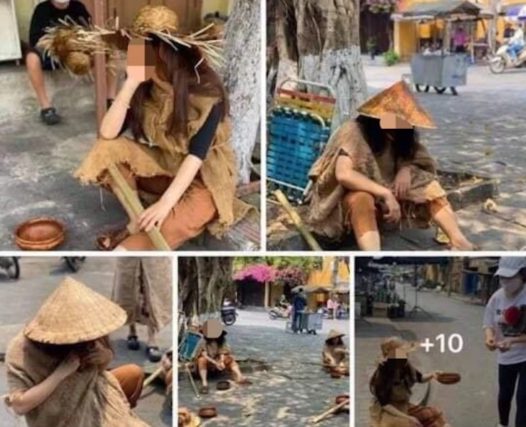 Hình ảnh nhóm người đóng giả ăn xin gây xôn xao cộng đồng mạng.