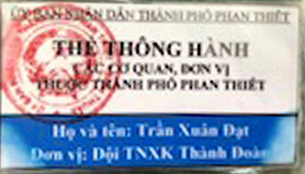 Thẻ thông hành của Đạt. Ảnh: CABT