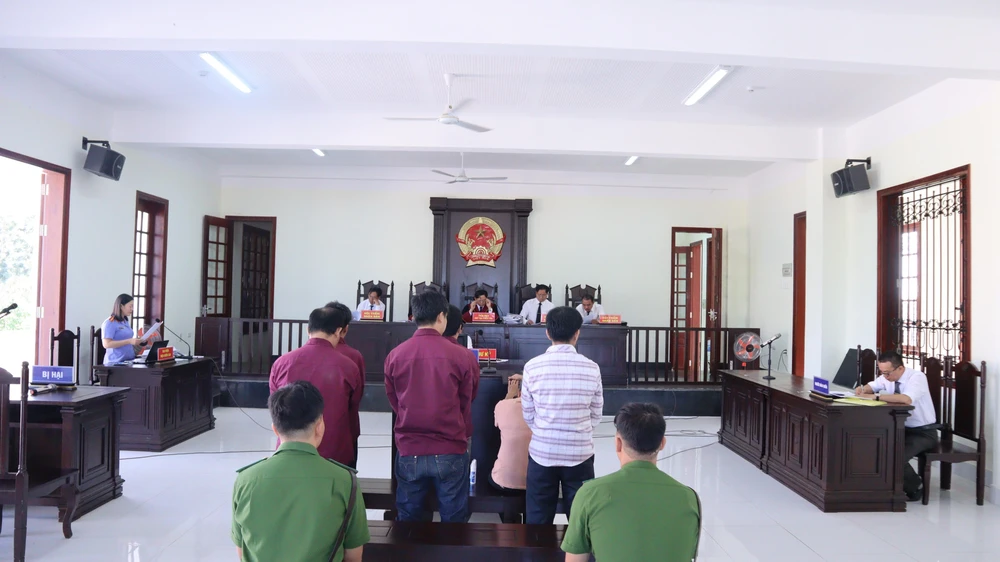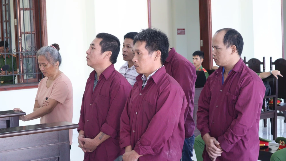 Các bị cáo bị đưa ra xét xử gồm: Trần Trung Tuyến (47 tuổi), Huỳnh Trung Trực (41 tuổi), Tạ Thị Ánh Hồng (54 tuổi), Dương Đình Quảng (44 tuổi, cả bốn cùng ngụ tại Bình Phước), Huỳnh Minh Tiến (32 tuổi, ngụ tại TP.HCM) và Lê Ngọc Tích (ngụ tại Bình Thuận).