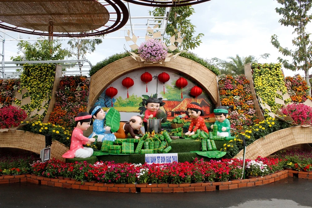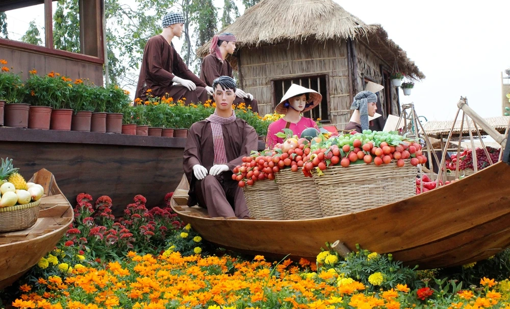 Mô hình chợ nổi Cái Răng tại đường hoa năm nay. Ảnh: NHẪN NAM