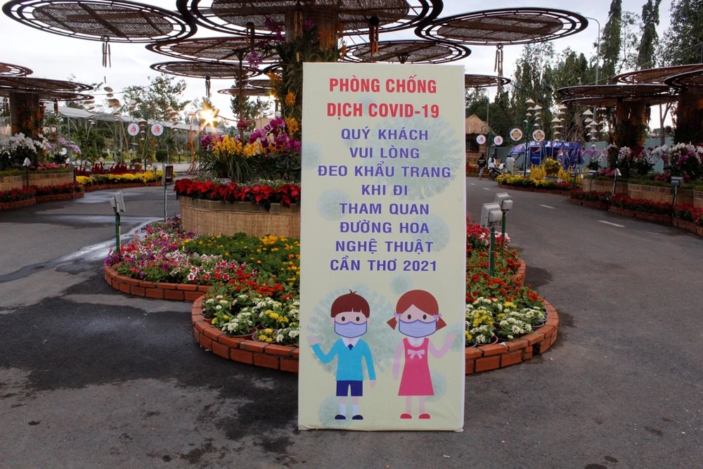 Để đảm bảo an toàn chống dịch COVID-19, Ban Tổ chức cũng dựng nhiều bảng nhắc nhở người dân tuân thủ các quy định về phòng, chống dịch bệnh khi tham quan đường hoa.
