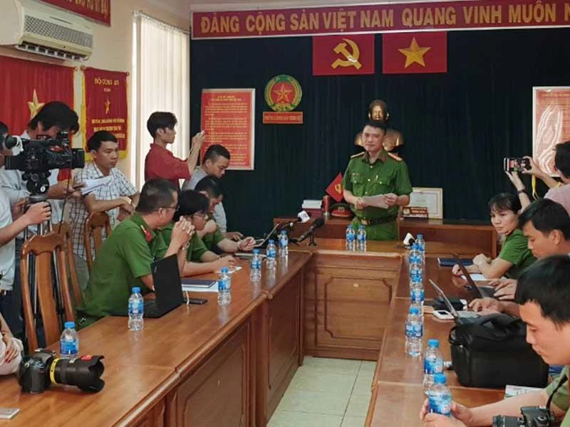 Thượng tá Nguyễn Đăng Nam tại buổi họp báo thông tin vụ phở Hòa. Ảnh: NT