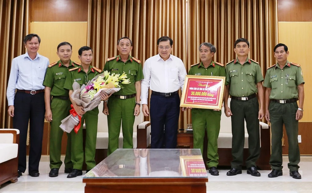 Sáng cùng ngày, ông Huỳnh Đức Thơ, Chủ tịch UBND TP Đà Nẵng, đã đại diện Thành ủy đến trụ sở Công an TP Đà Nẵng đến trao thưởng 30 triệu đồng cho ban chuyên án.