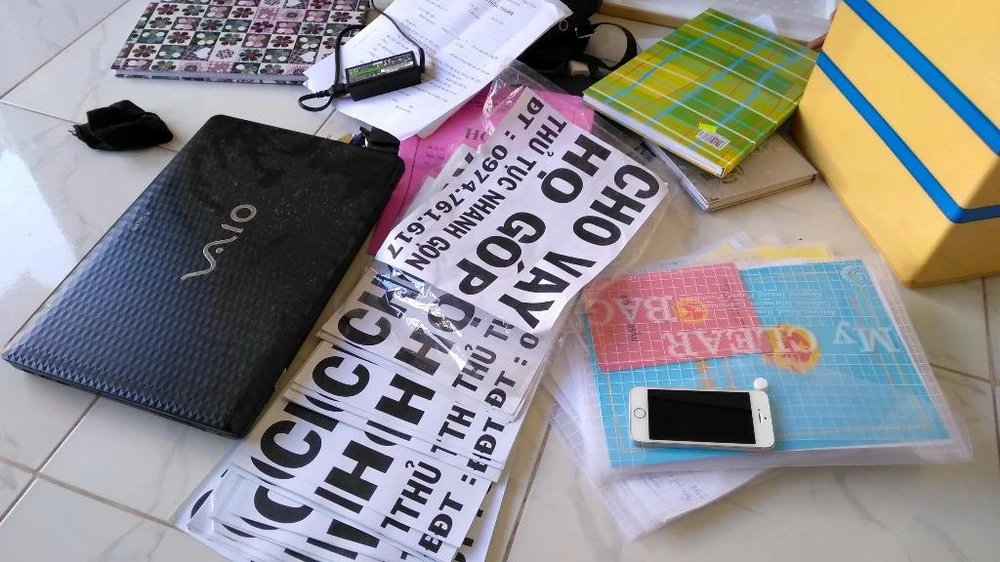 Lúc này có Hoàng Duy Tùng, Phạm Văn Long, Bùi Văn Hòa, Vũ Văn Trường (cùng quê Hải Phòng) đang ở bên trong. Qua kiểm tra nhanh, công an phát hiện nhiều tờ rơi quảng cáo cho vay trả góp, nhiều bộ hồ sơ vay tiền… Test nhanh, có ba người dương tính với chất ma túy.