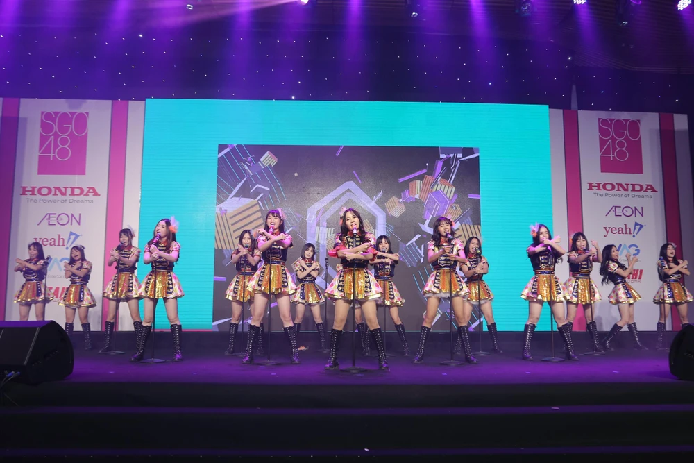 16 cô gái của SGO48 biểu diễn bài Heavy Rotation lần đầu trên sân khấu.