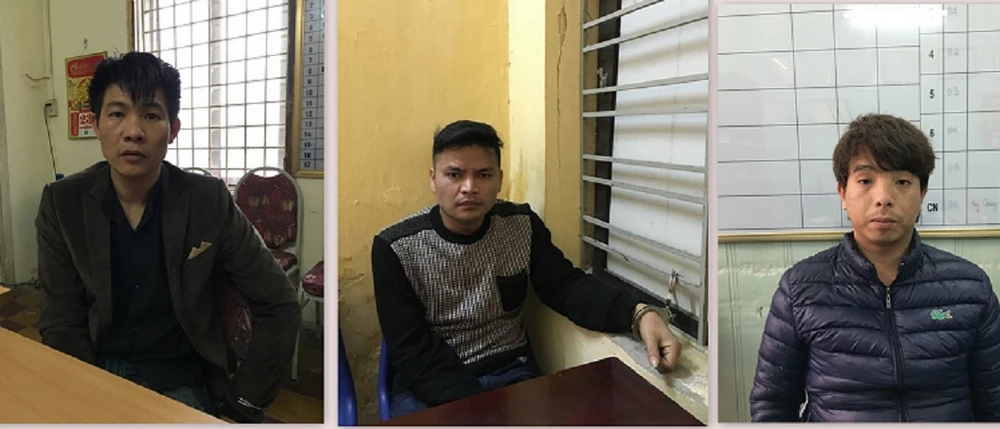 Các đối tượng tại cơ quan điều tra (người cầm đầu Phạm Đức Dũng bìa trái).