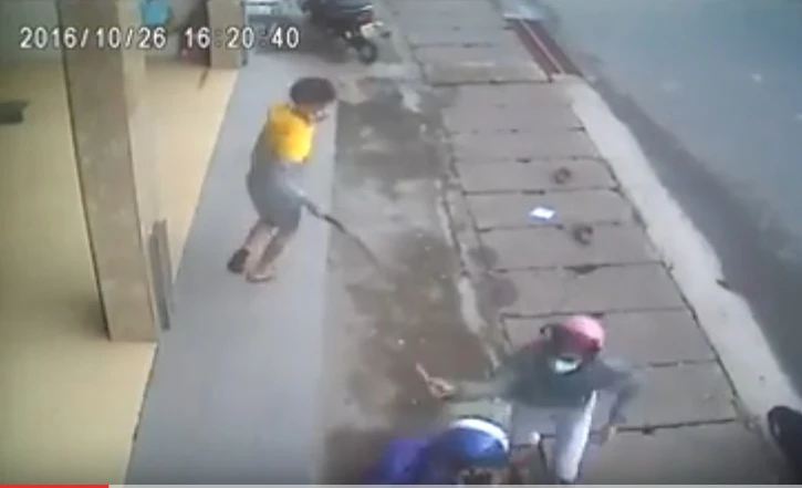 Hình ảnh ghi lại cho thấy hai thanh niên đi trên một chiếc xe máy bất ngờ bị một nhóm thanh niên bịt khẩu trang, mang theo hung khí truy đuổi đâm chém. Một người đã nhanh chân chạy thoát, người còn lại bị nhóm thanh niên dùng mã tấu chém như phim hành động. Khi nạn nhân bỏ chạy, các đối tượng này còn đạp đổ một chiếc xe máy dựng bên đường.