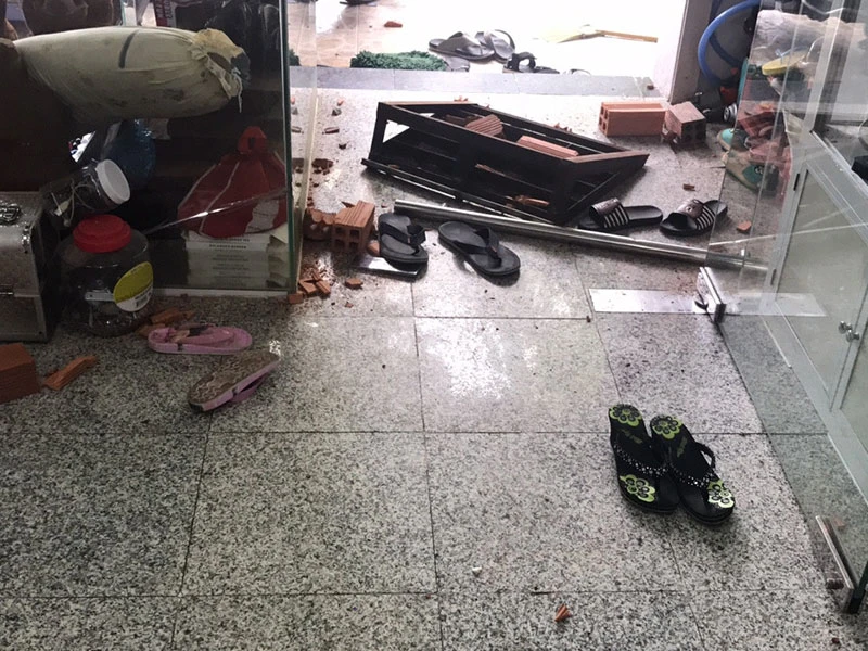 Vụ việc khiến đồ đạc trong căn nhà hư hỏng; gạch đá văng khắp nơi. Ảnh người dân cung cấp