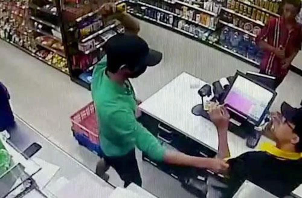 Camera ghi lại hình ảnh nhóm này uy hiếp nhân viên cửa hàng.