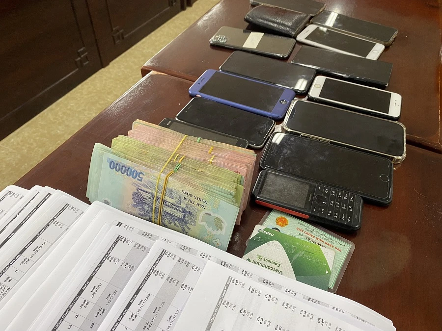Lực lượng Công an đã phát hiện, thu giữ 100 triệu đồng, 12 ĐTDĐ, 2 máy tính để bàn và nhiều tài liệu có liên quan đến hành vi đánh bạc và tổ chức đánh bạc.