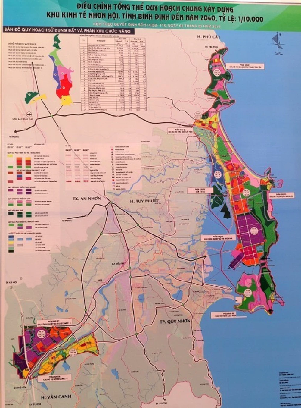 Trong đó, khu đô thị du lịch Nhơn Hội được quy hoạch thành khu đô thị hàng đầu miền Trung, cung cấp dịch vụ du lịch nghỉ dưỡng biển, cơ sở đào tạo nghề, bệnh viện, phát triển năng lượng tái tạo. Trung tâm hành chính của tỉnh được đặt tại khu lõi đô thị với nhiều công trình được xây dựng mới.