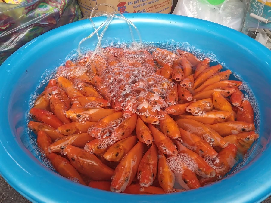 Cá chép sống tùy kích cỡ 40.000-50.000 đồng/con