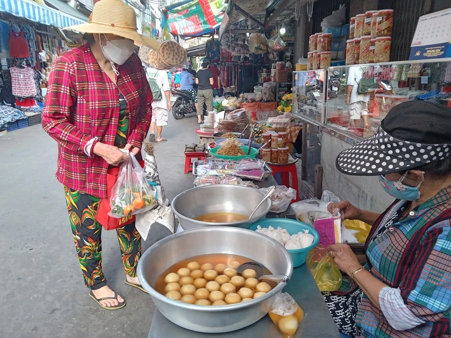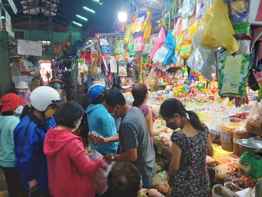 Tại chợ Trần Hữu Trang cũng có nhiều người đến mua bánh kẹo, hạt dưa, măng khô, đậu xanh…Tuy nhiên, nhiều tiểu thương cho hay, nếu so với cùng kỳ Tết năm ngoái lượng khách giảm 50%.