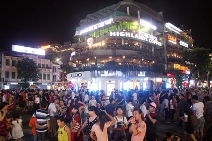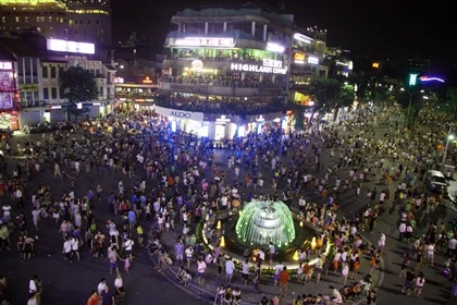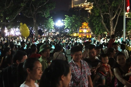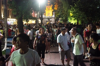 Ngay từ đầu giờ tối, nhiều người dân Thủ đô đã tới những tuyến phố đi bộ quanh khu vực hồ Hoàn Kiếm.
