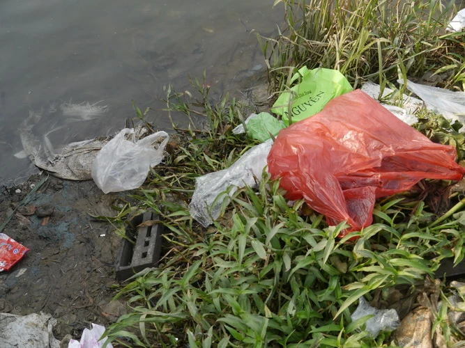 Bao nilon bị vứt lại bừa bãi ngay tại chỗ thả cá, tạo ra một cảnh tượng hỗn loạn. Gây ô nhiễm môi trường