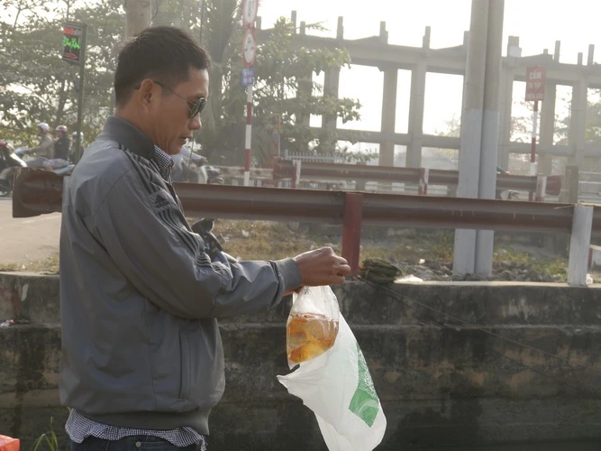 Cẩn thẩn khấn vái trước khi phóng sanh cá.
