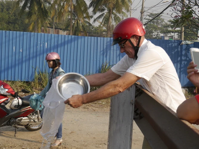 Đến đưa ông Táo về trời còn có cả những người nước ngoài. Họ đa phần là những chàng rể Việt, phong tục phóng sanh cá chép đã một phần nào gắn vào