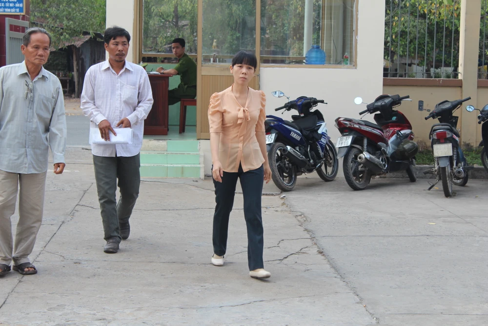 Bà Ngọc cùng người thân lên trụ sở Công an huyện Nhơn Trạch để nhận quyết định đình chỉ vụ án. Ảnh: TIẾN DŨNG