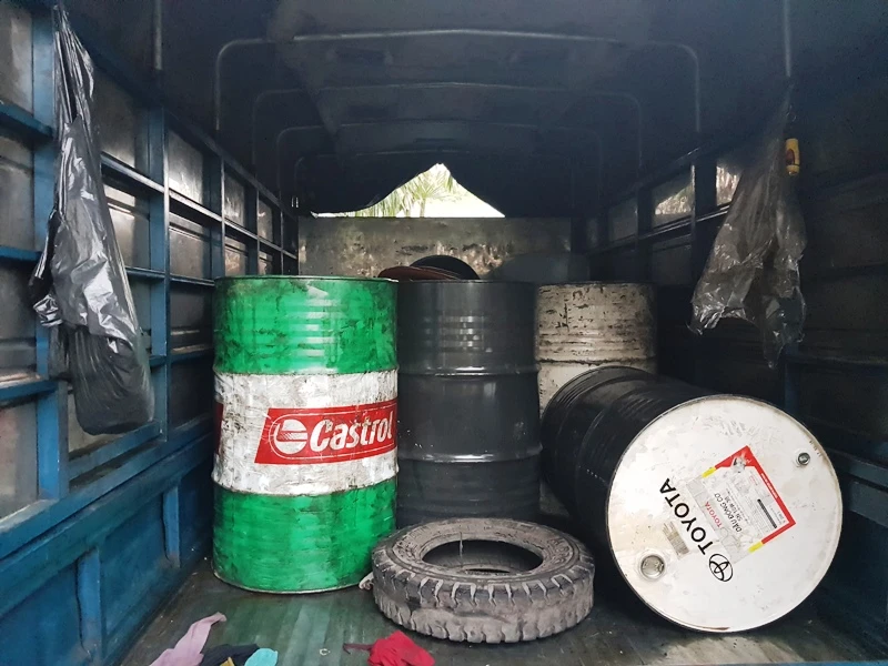 Xe tải thu gom nhớt thải từ các trung tâm bảo trì ô tô nhưng không đưa đi xử lý mà đem bán cho một cơ sở tái chế trái phép.