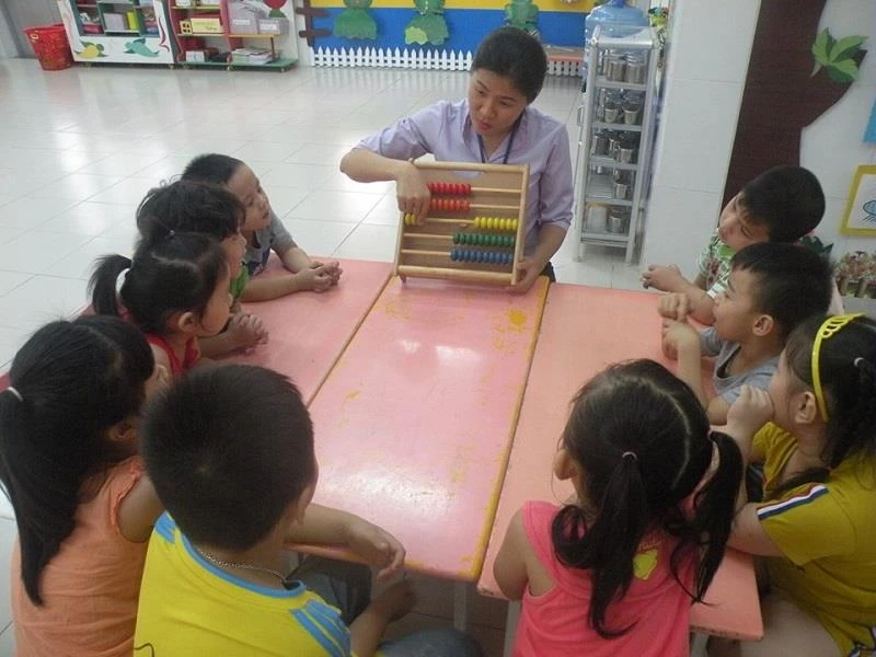 Các bé Trường Mầm non 30-4, quận Bình Tân rất thích được chơi với cô. Ảnh: NGUYỄN QUYÊN