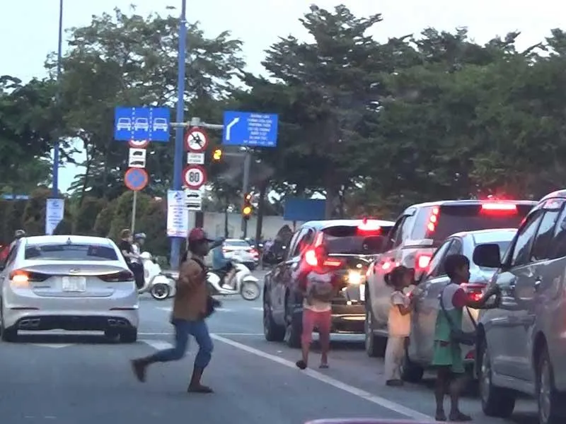 Trên đường Mai Chí Thọ (quận 2), một đoạn chưa tới 1 km đã có gần chục người ăn xin, chủ yếu là những đứa trẻ, họ đứng tại các ngã tư, khi các phương tiện dừng đèn đỏ là những đứa trẻ này ùa ra xin tiền từng người đi xe máy và cả ô tô.