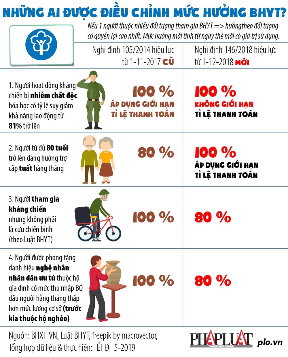 (PLO)- Theo Nghị định 146/2018 có hiệu lực từ 1-12-2018, các đối tượng dưới đây sẽ có thay đổi trong mức hưởng BHYT.