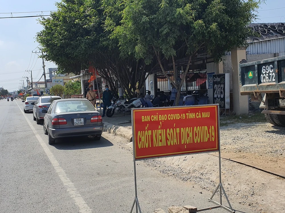 Chốt kiểm dịch quốc lộ 1A tại Tắc Vân, TP Cà Mau. Ảnh: TRẦN VŨ