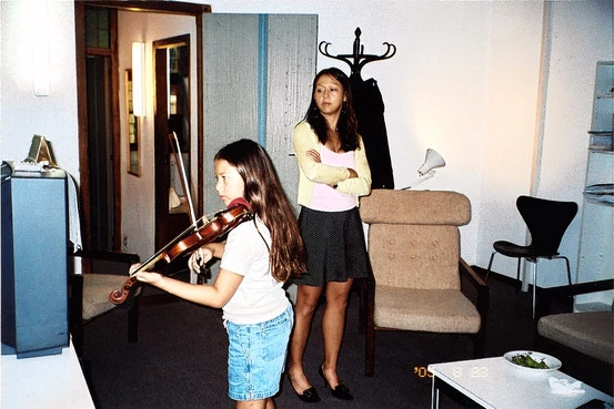 Một buổi luyện đàn của Lulu dưới sự kèm cặp của “mẹ hổ” Amy Chua (Ảnh: Wall Street Journal)