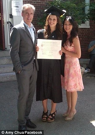 Hai cô con gái Amy Chua là Sophia (23 tuổi) đã tốt nghiệp ĐH Harvard danh giá và hiện làm việc tại trường Luật Yale, còn Lulu (20 tuổi) là sinh viên năm thứ 2 ngành lịch sử của ĐH Harvard.
