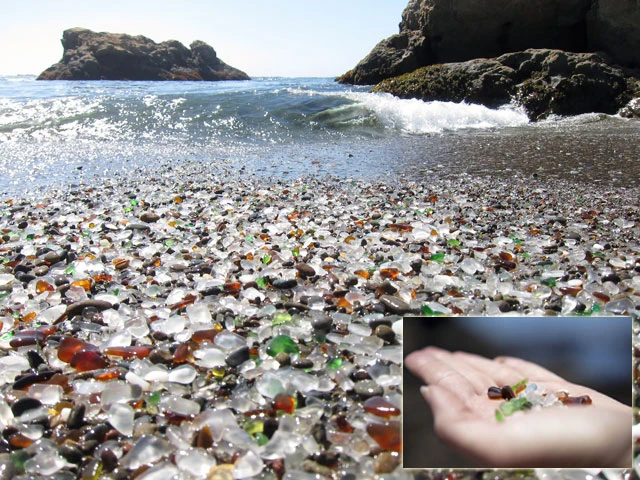 Biển Kính là một trong những bờ biển độc đáo nhất thế giới và được người ta ví như là thánh địa Mecca cho người thu gom thủy tinh biển. Những cư dân của thành phố Fort Bragg đã xử lý chất thải bằng cách gom chúng lại và vứt ra vách đá trên bãi biển, rác thải là các vật dụng gia đình và phần lớn là đồ thủy tinh.